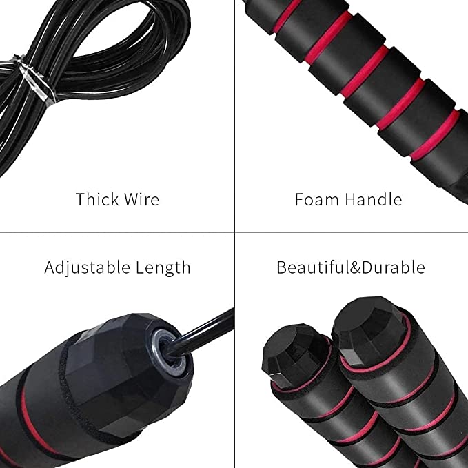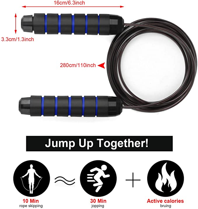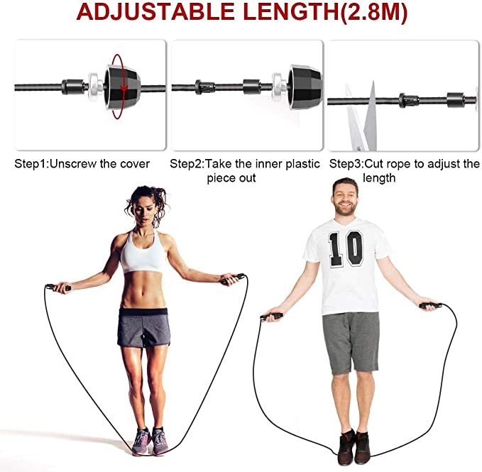 【Premium Quality Material 】☆Tangle-Free: The braided steel wire rope is coated with PVC, which features durable and smooth, ensures the maximum service life and avoids cracking or breaking.100% tangle free, not have rope twisted worries any more. ☆Adjustable Length: The skipping rope can be quickly and easily adjustable from 110 inch down to your desired length within minutes, you can cut the excess according to your heights.