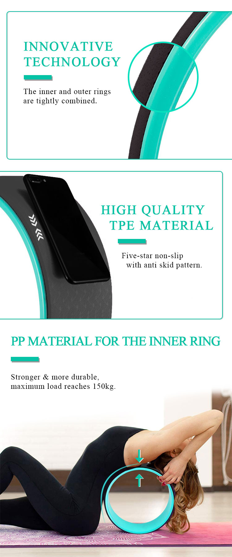 * High quality material used :the surface is with tpe mat ,which is anti-slip ,eco and long lasting .the maximum load capacity is up to 200kgs(550lbs).